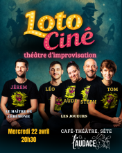 Dans Loto Ciné, c’est le public qui décide : proposez des thèmes, choisissez des genres cinématographiques… et regardez 4 comédiens relever le défi en direct !