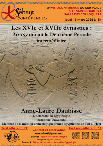 La conférence sera présentée par Laurianne LANCIEN, doctorante en égyptologie, Université Paul-Valéry Montpellier 3.