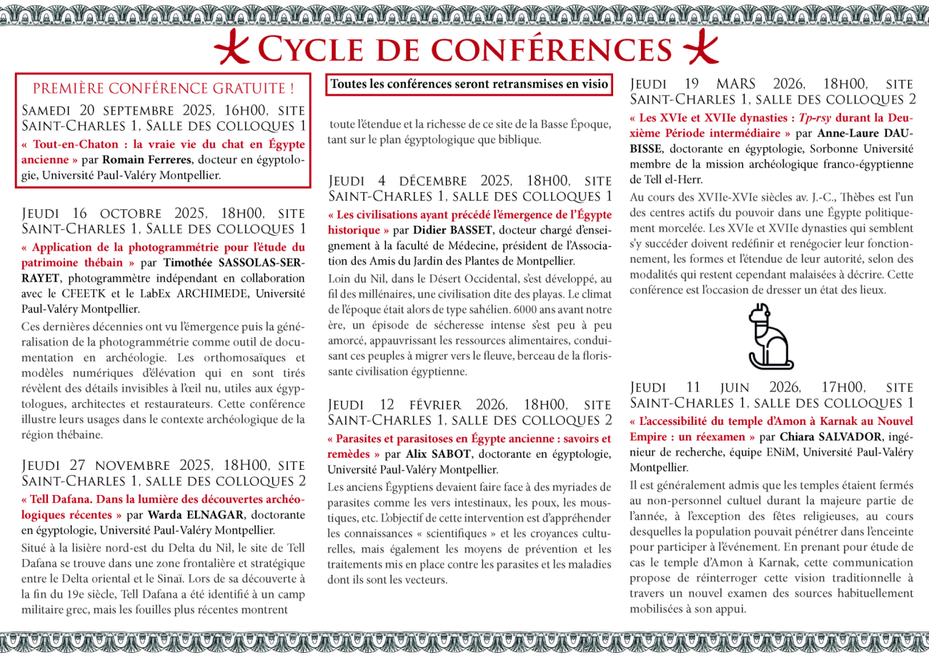 La Conférence sera présentée par Romain Ferreres, docteur en égyptologie, Université Paul-Valéry Montpellier 3,